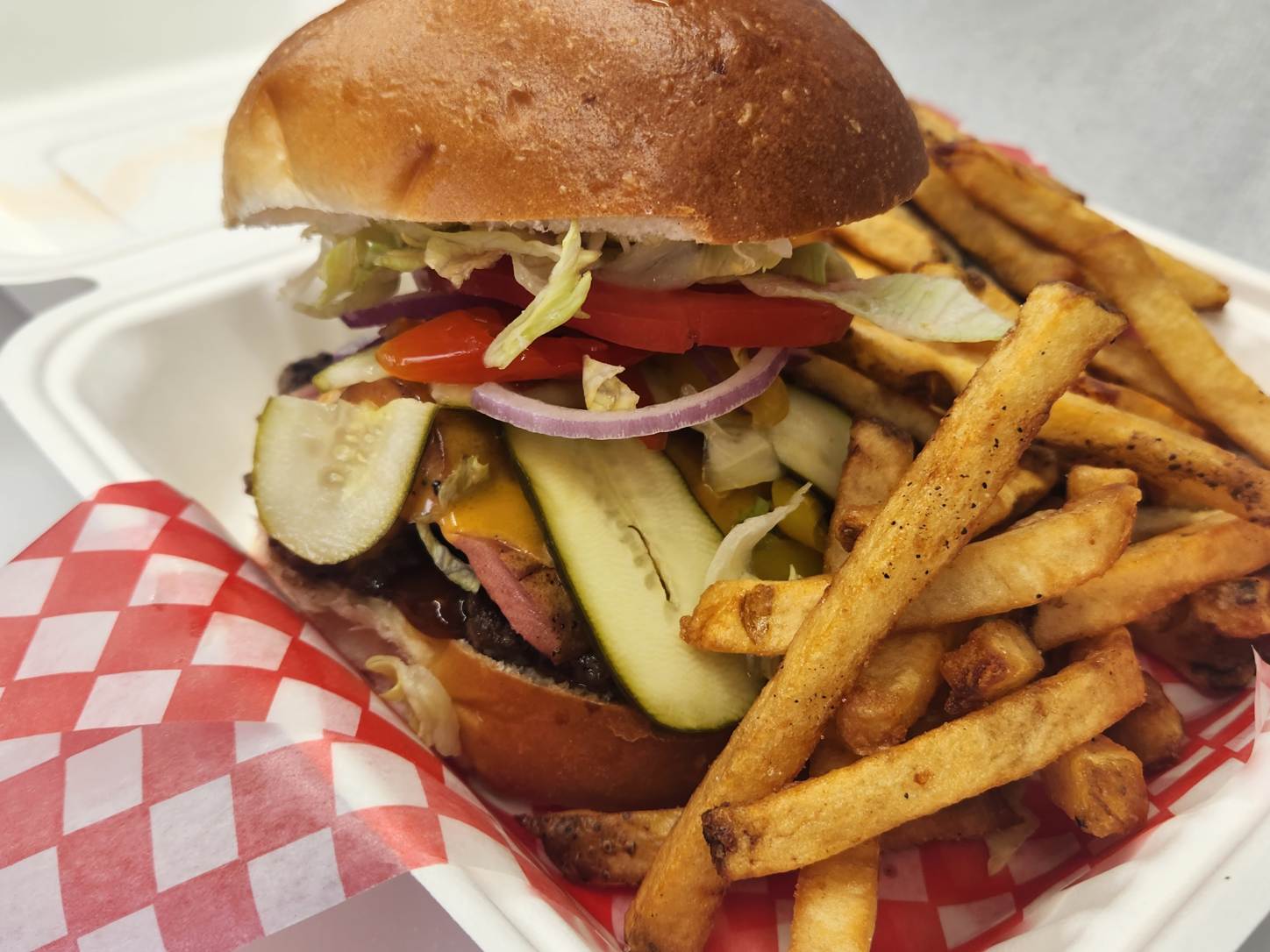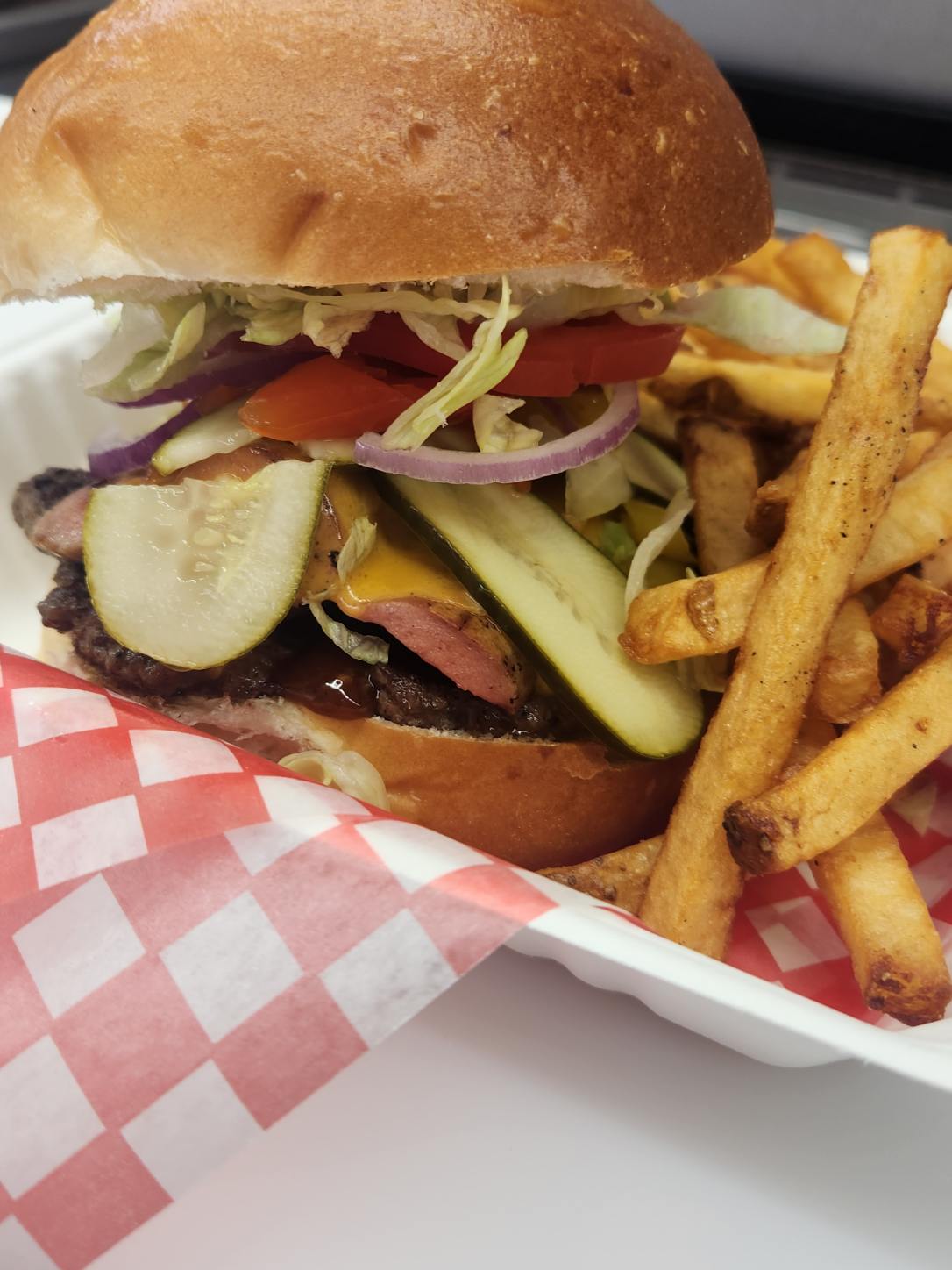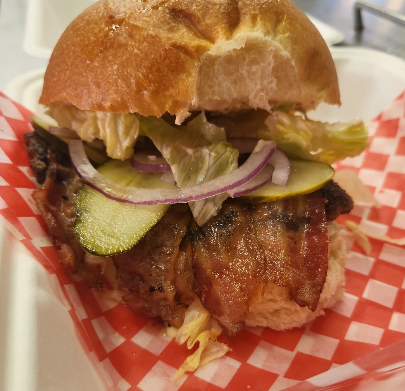 A bold burger built to conquer cravings—crispy bacon, melted American cheese, all tied together with Smoky Bacon Flavour Sauce. Meaty, messy, and mouthwatering.